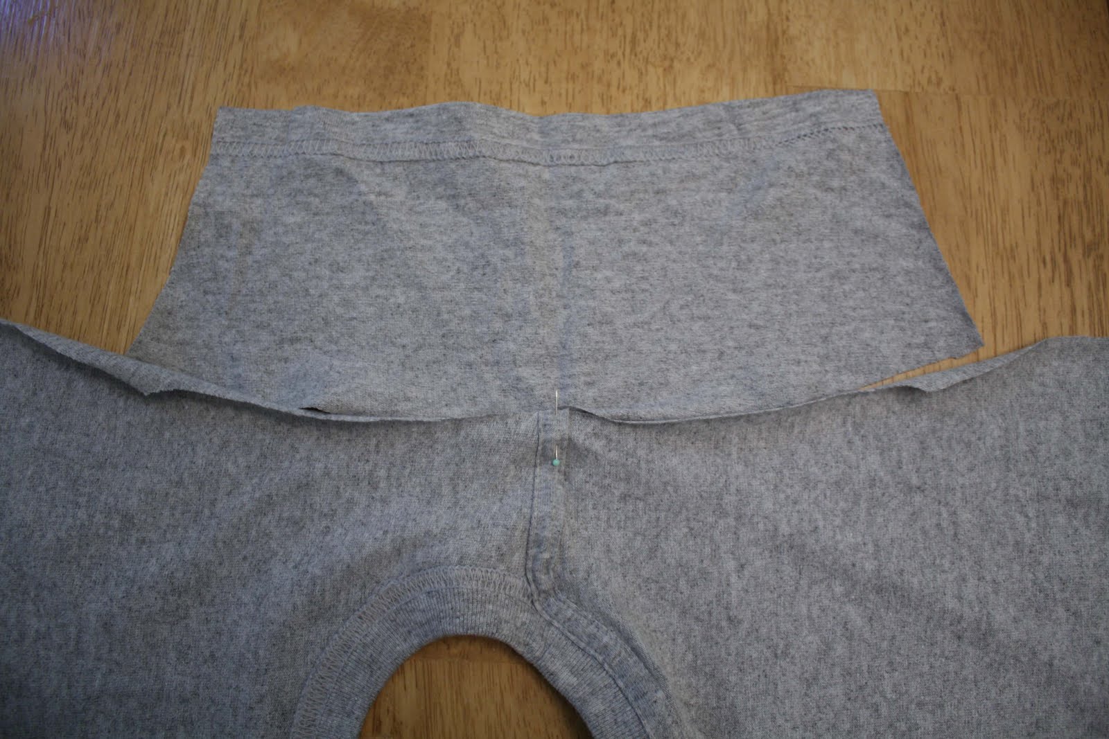 Lay shirt that fits on top with sleeves folded under. Cut off excess side fabric, leaving 1/2″ for seams